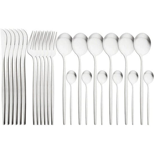 24pcs Black Gold Silver Upscale Tableware Dinnerware Stainless Steel Cutlery Sets In Gift Box