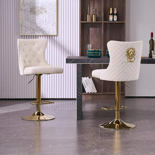 Designer luxury Velvet Upholstered Bar Chairs With a Lion's Head Pull Ring Set Of Two