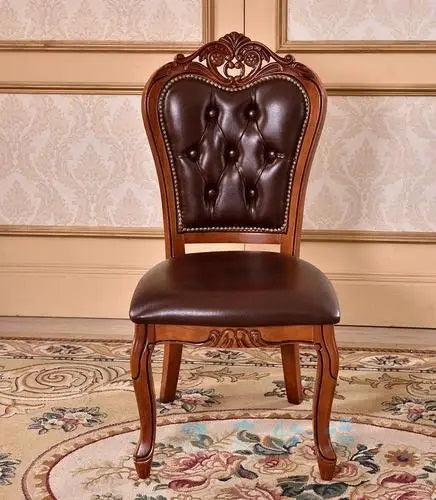 Luxury Italian Style Mahogony Wood Hand Carving Leather and Upholstered Dining Chairs