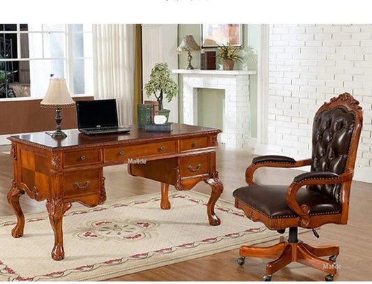 Luxury Italian Style Mahogony Wood Hand Carving PU Leather Swivel Office Chairs