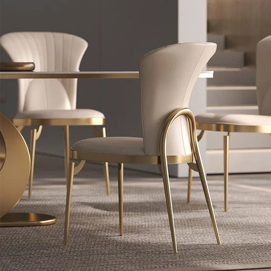 Premium Laxury Italian Modern Gold Dining Chairs with Faux Leather By Muebles