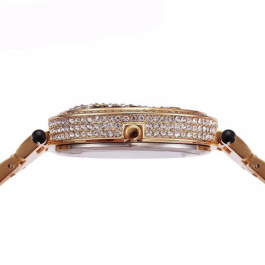 Miss Fox Swiss Leopard Geneva Style Top Dimond Designer with 18 carat Gold Elegant Quartz Watches for Women Gift Set Water and Shock Resistant