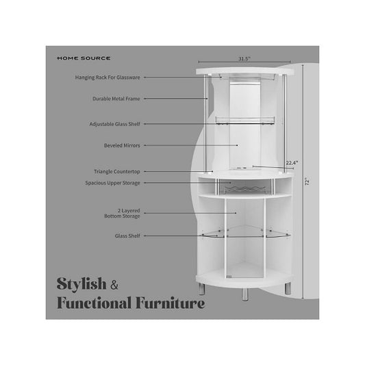 White Corner Wood Wine and Liquor Bar Cabinet, Built-in Wine Rack, and Lower Glass Cabinet
