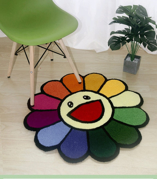 Cartoon Sun Flower Round Carpet Anti-slip Soft Plush Rugs