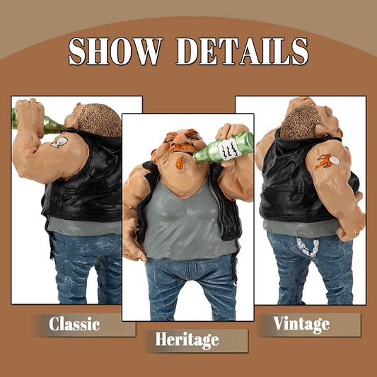 Funny Biker Collection Figurine with Holding a Beer Bottle Home Decor Statie