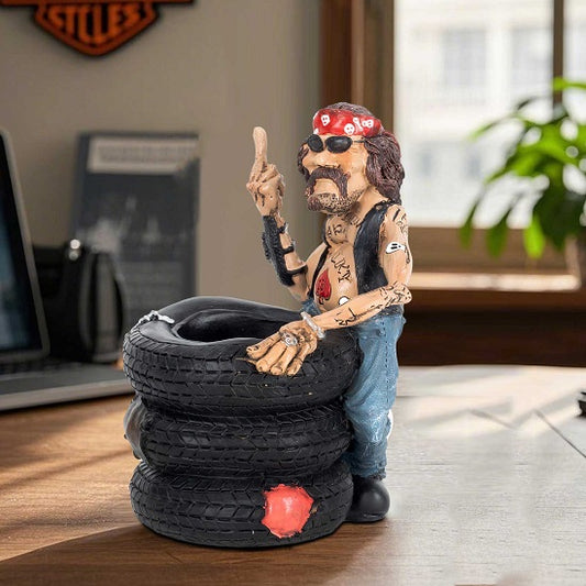 Funny Biker Collection Figurine with Sitting on Tires Middle Finger Gesture Home Decor Statie