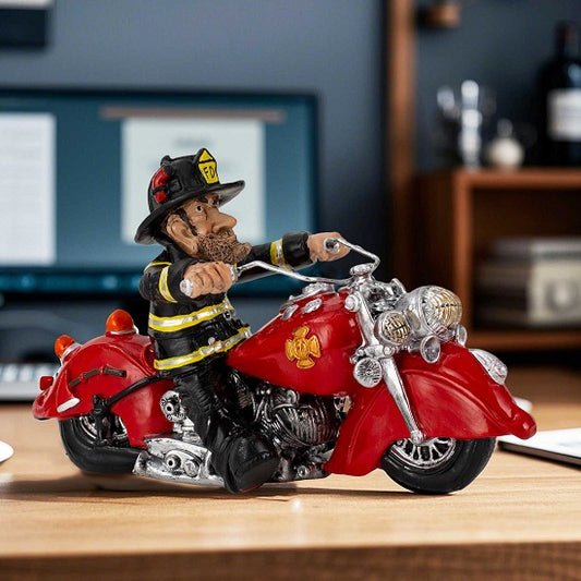 Funny FD Firefighter on Motorcycle Collection Figurine Home Decor Statie