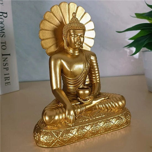 Feng Shui Gold and Bronze Sakyamuni Meditation Buddha Sculpture Seating On Lotus Flower Symbol of Compassion and Mercy and Healing