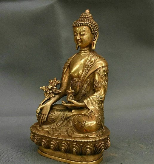 Large Brass Menla Medicine Buddha Buddha Statue Symbolizes the Power of Healing and God Health.