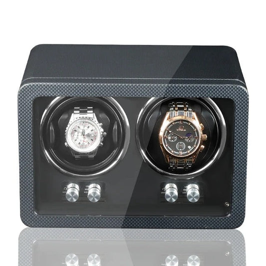 Luxurious Carbon Solid Wood Fibre Material Antimagnetic Double Watch Winder With LED and AC/DC Adapter