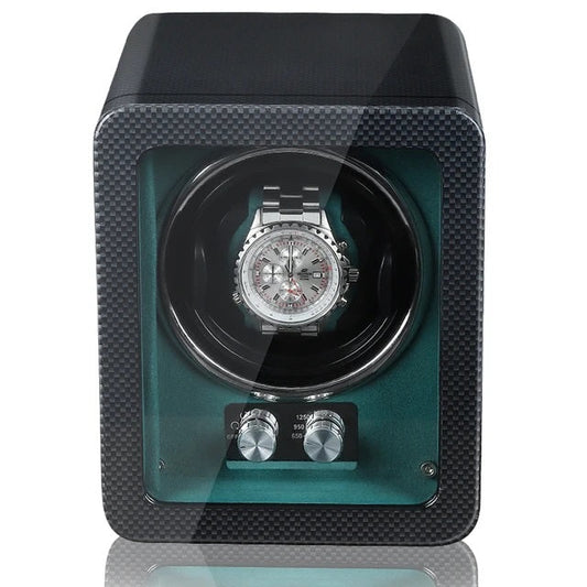 Luxurious Carbon Solid Wood Fibre Material AntimagneticSingle Watch Winder With LED and AC/DC Adapter