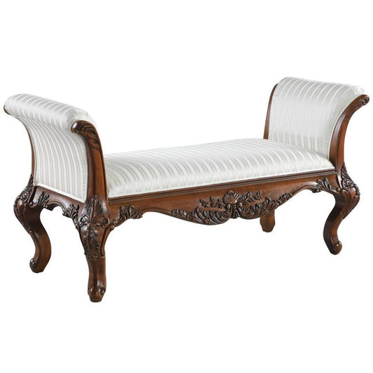 European Style Hand Carved Solid Mahogany Rolled Arm Bench