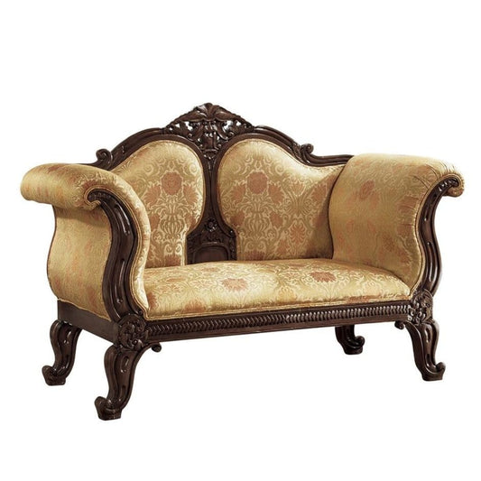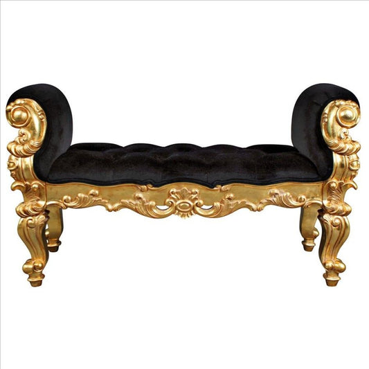 French Style Hand-carved Solid Mahogany Real Gold Leaf Finish Double Rolled Arm Bench