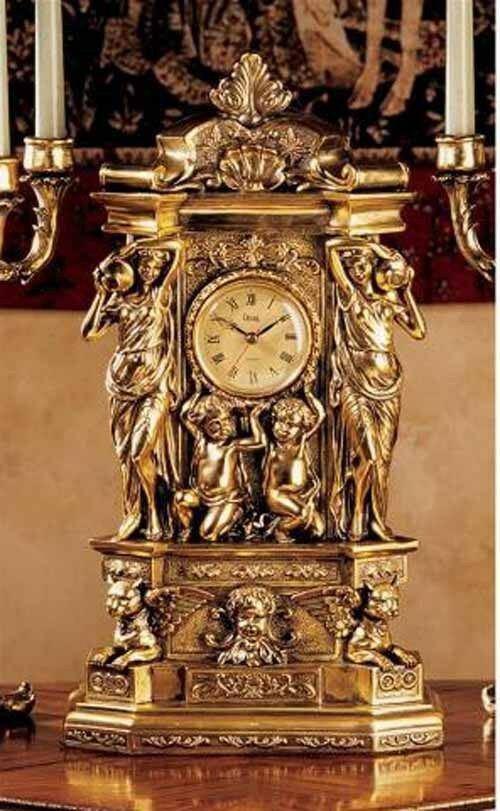 Golden Rococo Grand Mantel Clock And Candelabras Angels Cherubs Assembly