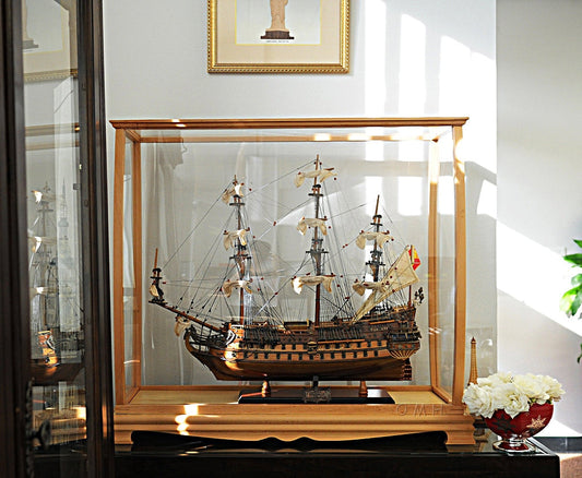 Floor Display Case Cabinet Wood with Plexiglas Panels for Tall Ship Yacht and Boat Models