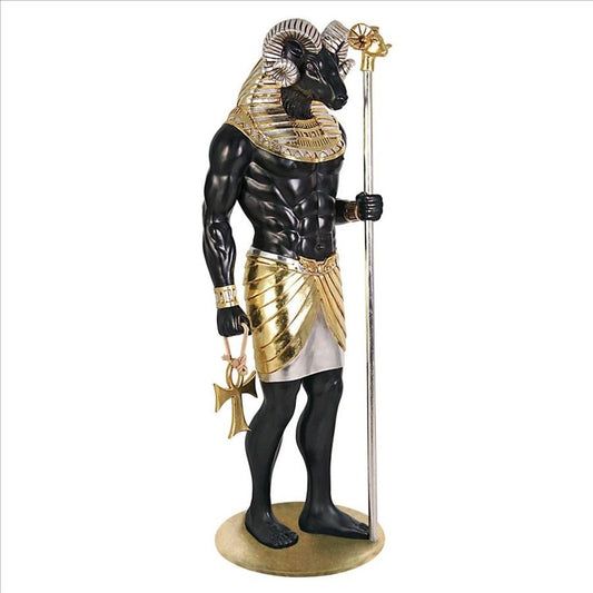 Life-Size Khnum Egyptian Grand Ruler Hand Painted in Faux Ebony and Real Gold and Silver Statue