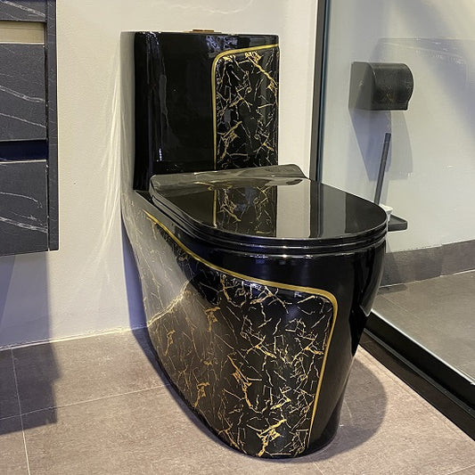 Private Collection Elegant Luxury Gold Pattern Designer Black and White Ceramic Nano Glaze Siphonic S-Trap Super Swirling Toilet