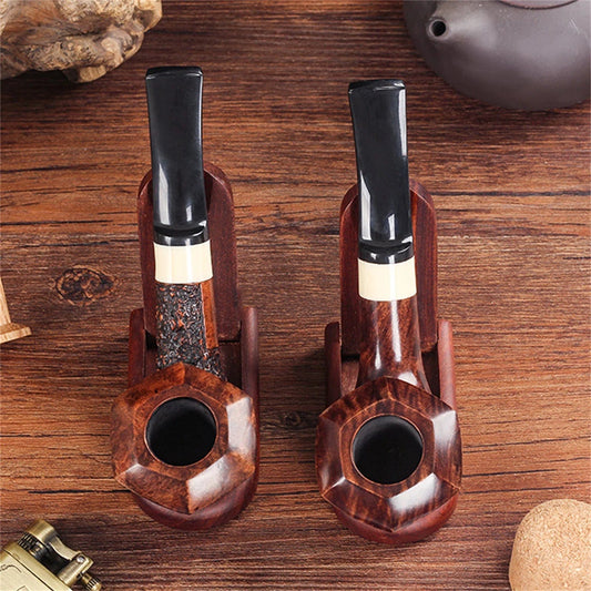 Hand Made Hexagonal Briar Wood 9mm Gentleman Curved Vintage Pipe