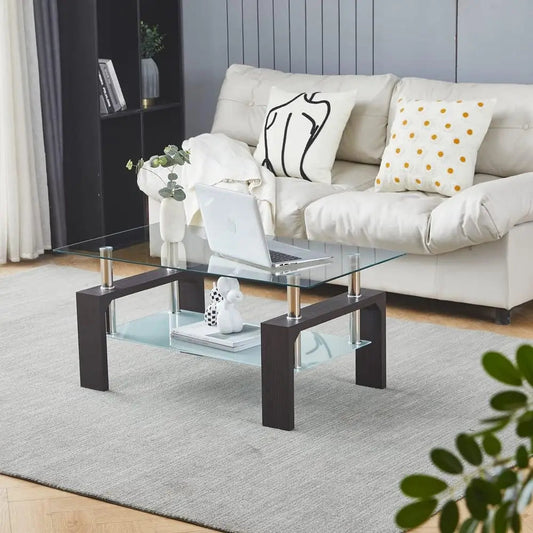 Modern Luxury Elegant Black and White Coffee Tables Set With Two Stools and Glass Top