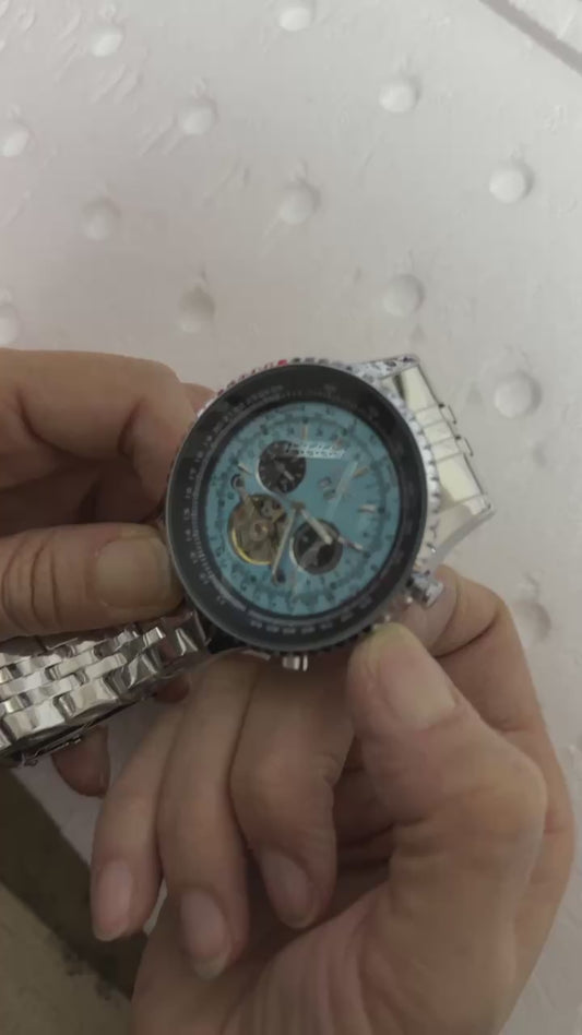 Aviator Man's Luxury Wrist Sport Multifunction Watch Automatic Tourbillion Design Movement Date Day,Week & Month Calendar Waterproof