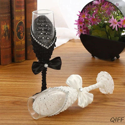 Two Bridal Groom Wedding Led Free Crystal Champagne Wine Glasses Set of Two