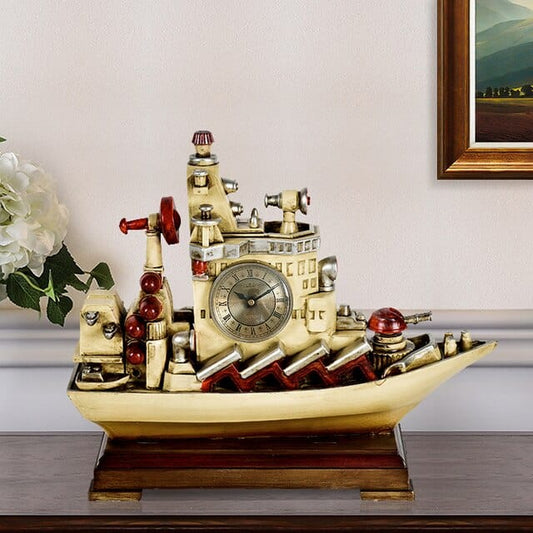 Vintage Ship Desktop Quartz Alarm Clock and Roman Numeral Display