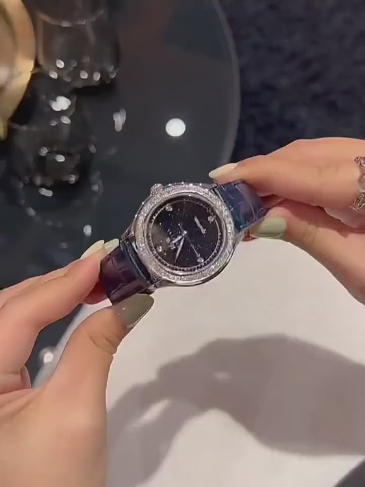 IW Fashion Elegant Diamonds Woman Sapphire Leather Luminous Waterproof Switzerland Made Quartz Watches