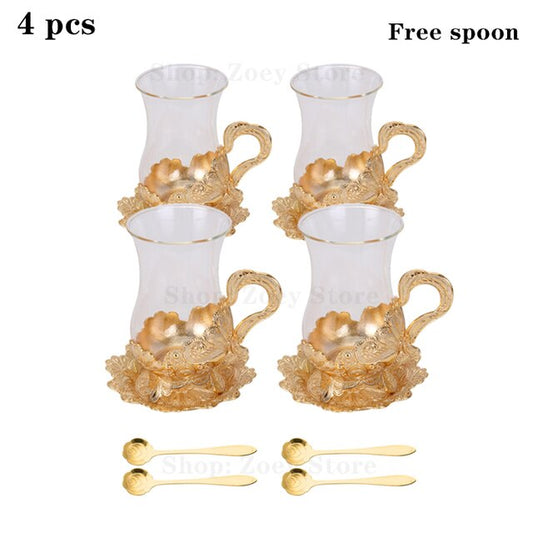 European Exquisite Glass Cups with Gold Saucer ,Spoons and Coffee Pot For Tea or Coffee and Tea