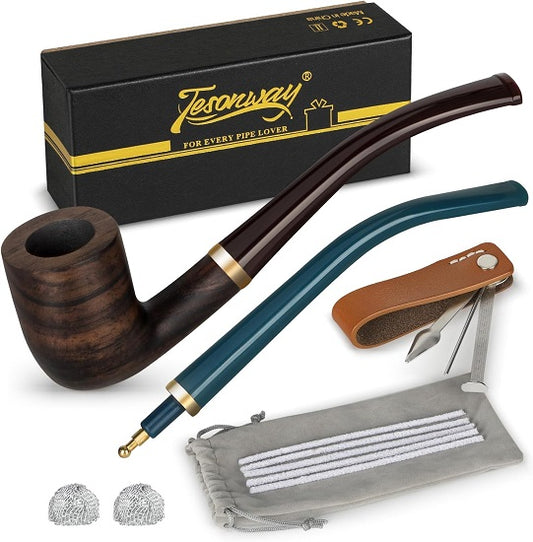High Quality Handmade Premium Food Grade Natural Ebony Wood Pipe with Replaceable Long Pipe Stem and Accessories