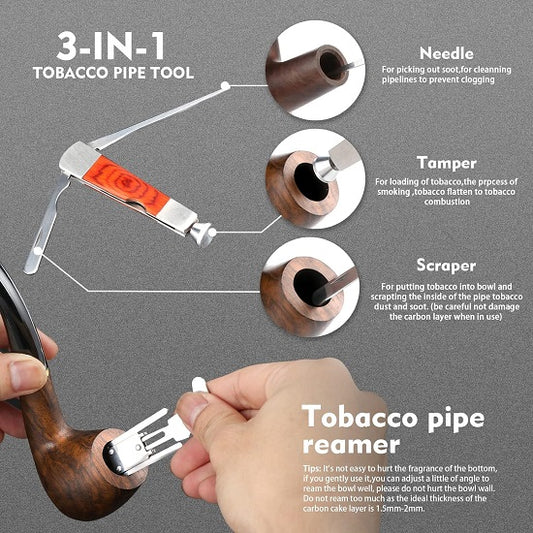 High Quality Natural Briar Wood Brown Pipe With PU Leather Pouch Stand Holder and Pipe Accessories Complete Set