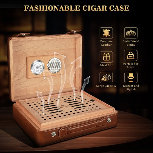 Portable Cedar Wood Multifunctional Travel Humidor with a Classic Crocodile Print Design.