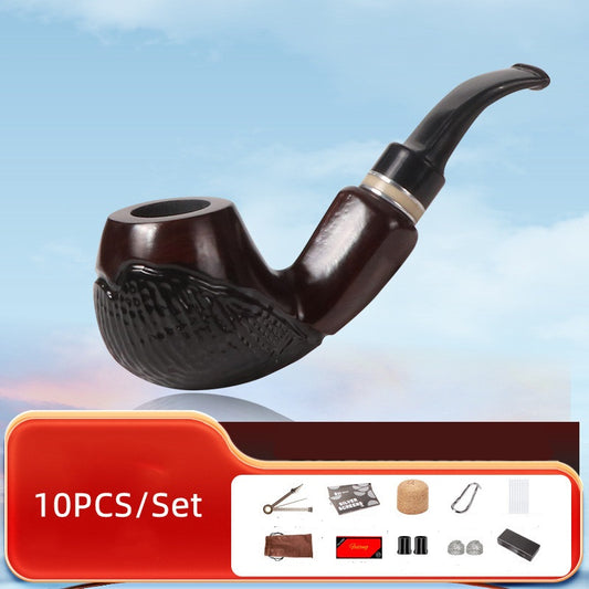Solid Brown Wood Dry Ebony Smoking Pip With 10 Psc Tools Kits