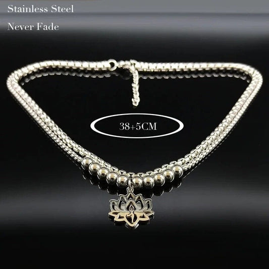Yoga Lotus Stainless Steel Double Layer Necklace Pendant Bracelet and Earings For Good Health and Great Fortune for Woman