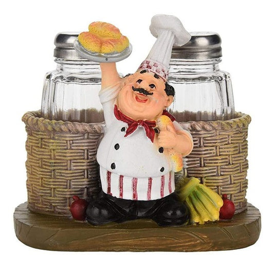 Kitchen French Chef Salt and Pepper Bottles Holder Figurines Statues