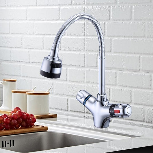 360 Degree Swivel Thermostatic Kitchen Solid Brass Faucet Single Hole Deck Mounted