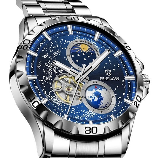 Luxury Space Starry Sky with Rotating Earth Calendar Water Resistant and Luminous Display Swiss Movement Sport Automatic Watch for Man
