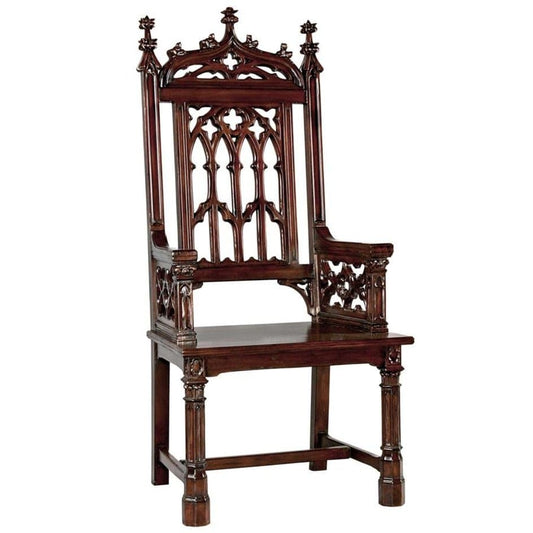 Hand Carved Solid Mahogany Replica Gothic Cathedral Arm Chair