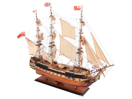 HMS Surprise British Royal Navy Frigate Tall Ship Portrayed in the Movie Master and Commander Wood Model Sailboat Large With Table Top Display Case