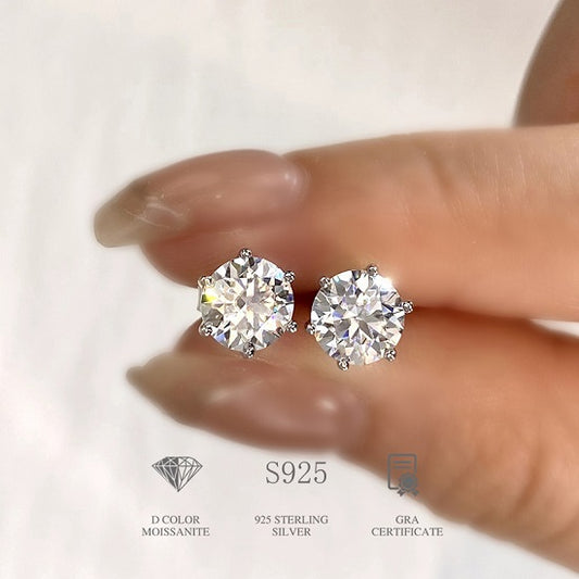 Full D Color 3mm 925 Sterling Silver White Gold Plated Earrings with Lab Diamonds for Women