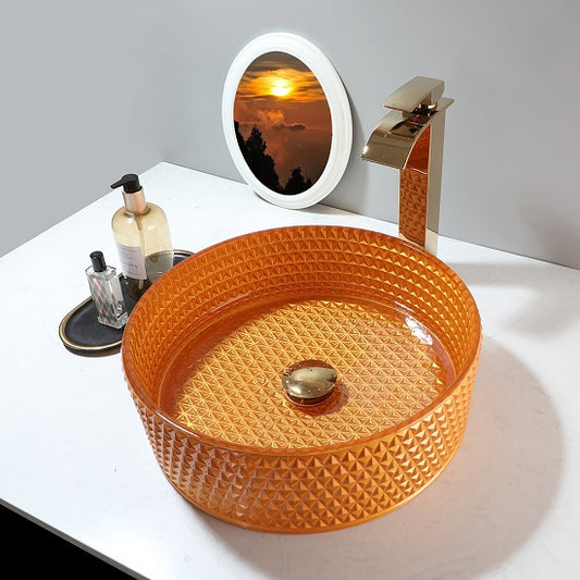 Round Tempered Glass Basin Sink Set wit Solid Brass Faucets