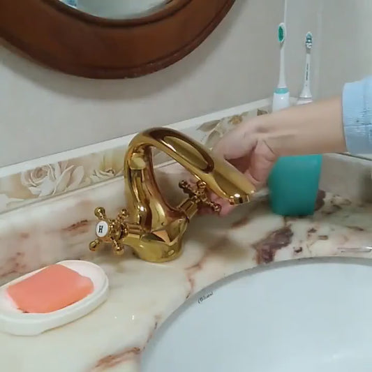 Luxury Solid Brass Gold Bathroom Basin Sink Faucet Deck Mounted with Dual Handles