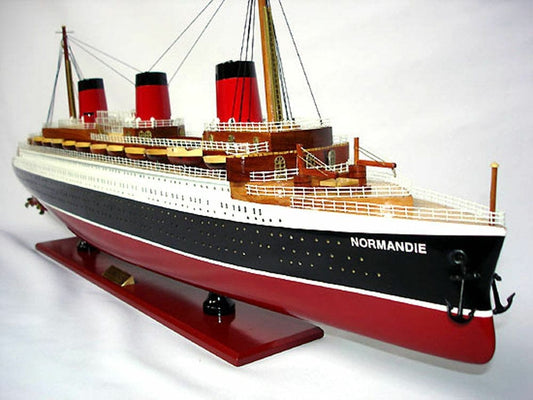 T.S.S. Normandie French Painted Passenger Ship Ocean Liner Large Wood Model Assembled