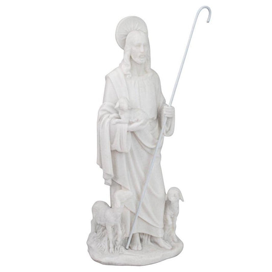 Jesus Crist Good Shepherd Bonded Marble Statue By Artist Carlo Bronti