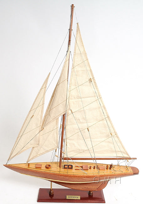 America's Cup Enterprise Yacht Small Sailboat Wood Model Assembled