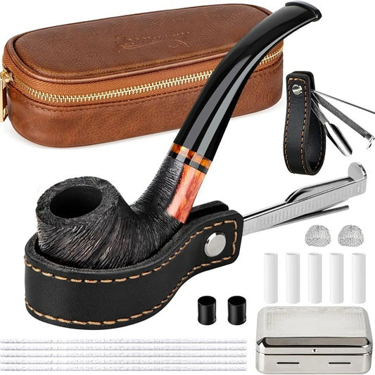 Natural Wood Pipe With Tools and Set with Pipe Holder and Storage Bag Various Accessories Gift Box