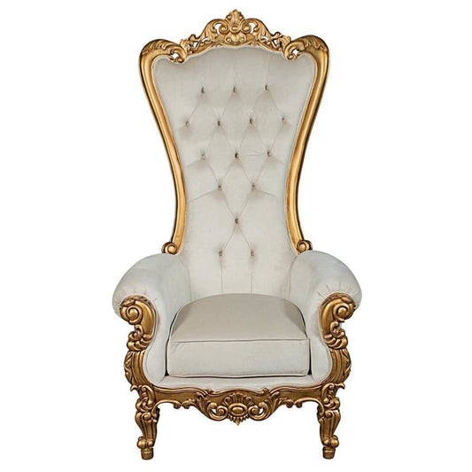 Princess Great Royal Baroque Golden White Throne Armchair With Real Gold Leaf