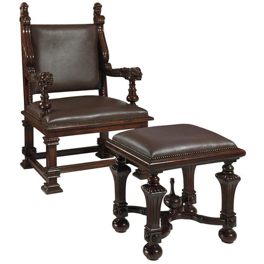 Victorian Style Lord Cumberland's Hand Carved Mahogany Throne Chair and Foot Stool