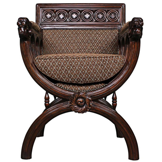 Medieval Renaissance Style San Lorenzo Hand Carved Solid Mahogany Cross Frame Armchair