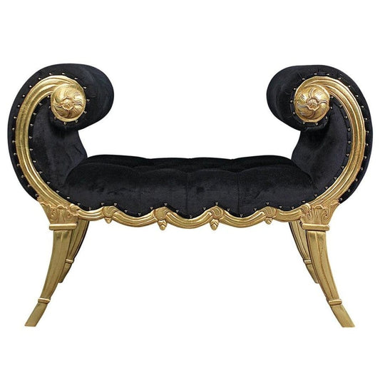 Victorian Style Scrolled Golden Mahogany Boudoir Bench with a Real Gold Leaf Finish