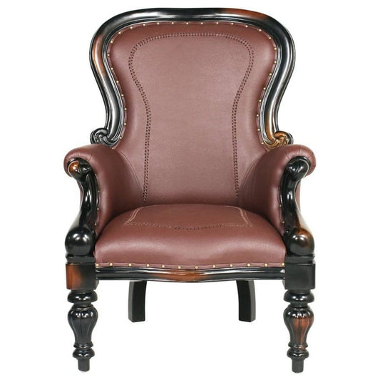 Victorian Style Rococo Mahogany Faux Leather Wing Chair